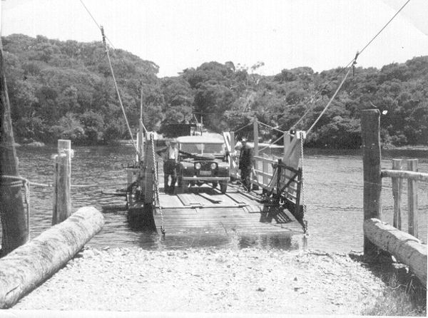 Landrover on the punt crossing over the Arthur River, Tasmania
